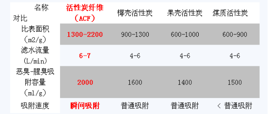 ACF吸附功能对比表: